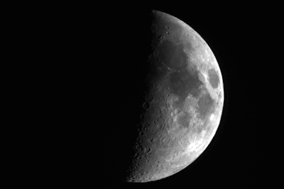Zabawnie jest zestawić ze sobą obraz z symulacji, która (na razie) nie oddaje szczegółów rzeźby księżycowej powierzchni ze zdjęciem Księżyca, uzyskanym z Mikroobserwatorium: